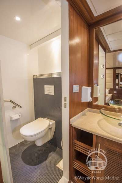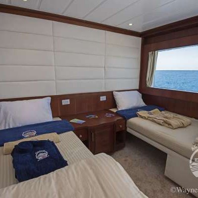 • 6 кают TWIN (№ 1, 2, 3, 4, 5, 6) на нижней палубе с двумя односпальными кроватями и иллюминатором, размер кают: 4,4 м х 3,8 м