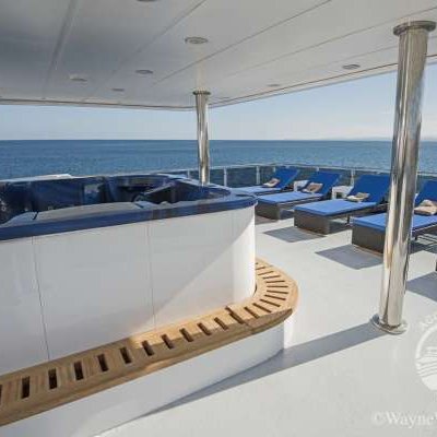• Солнечная палуба с шезлонгами и затенённым пространством с баром