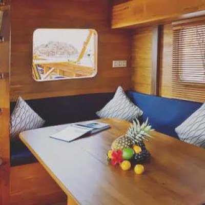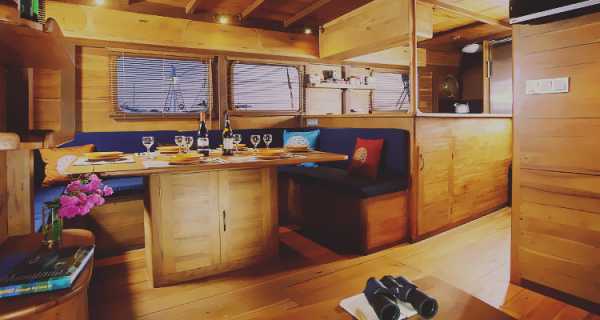 На яхте имеется полностью оборудованная кухня с органическими и натуральными туалетно-косметическими принадлежностями Bambooku.