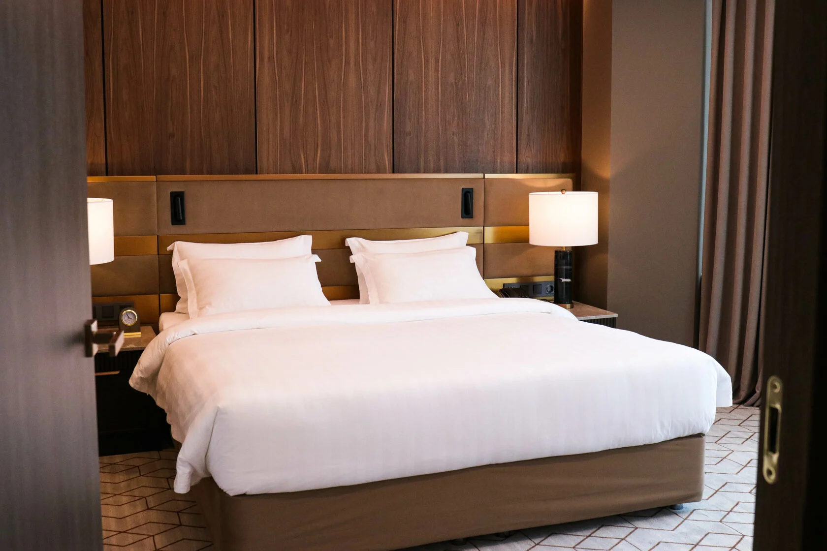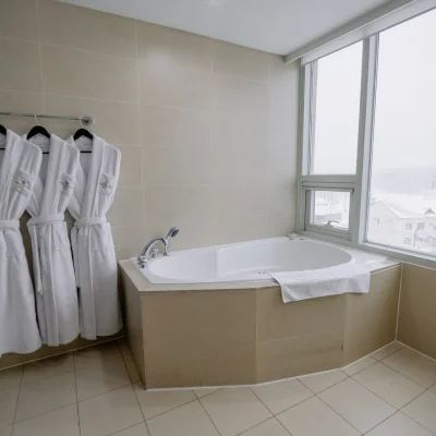 В распоряжении гостей более ста комфортабельных номеров - просторные дизайнерские пространства, оформленные в светлых тонах, в лучших традициях европейского гостеприимства - от стандартных категорий до президентских апартаментов. Исключительной особенностью является панорамный вид на горы и город. Spa-комплекс и фитнес-центр позволят с комфортом провести время после тяжелого дня.