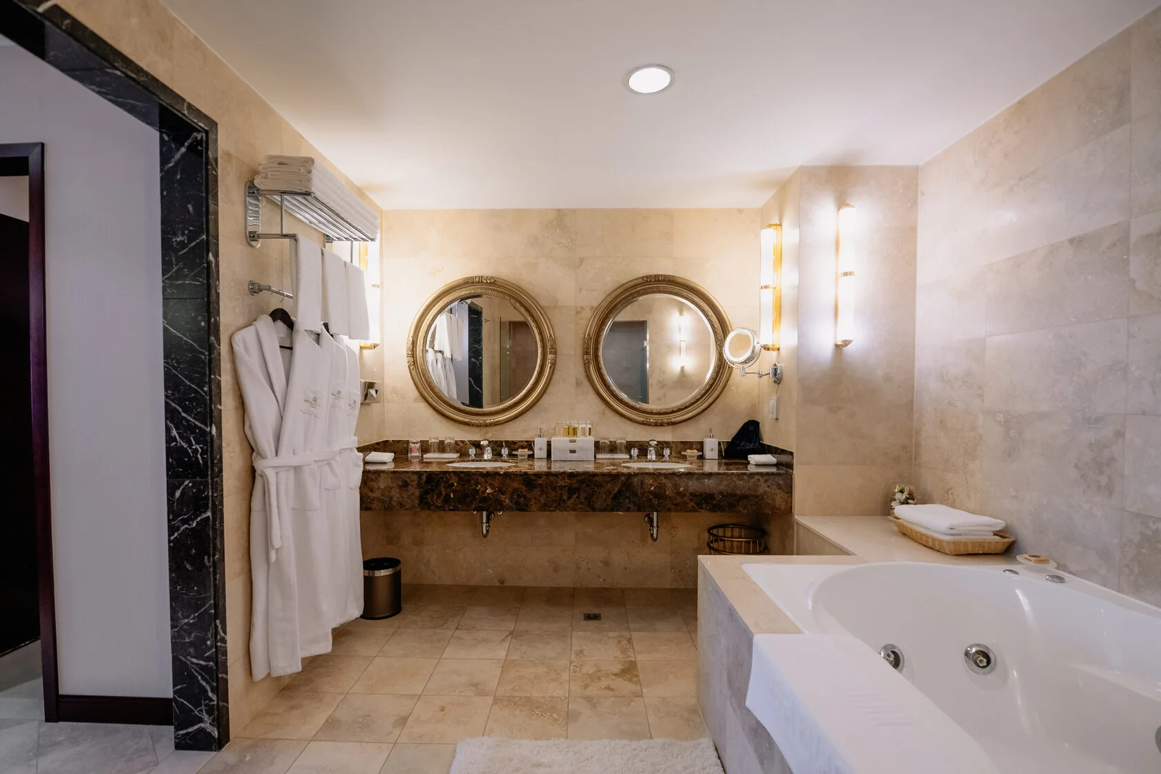 Двухкомнатный номер: спальня с двуспальной кроватью, спальня с двумя раздельными кроватями, гардеробная, ванная комната.