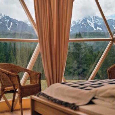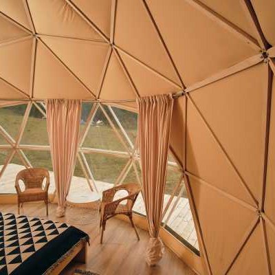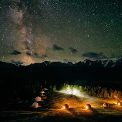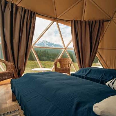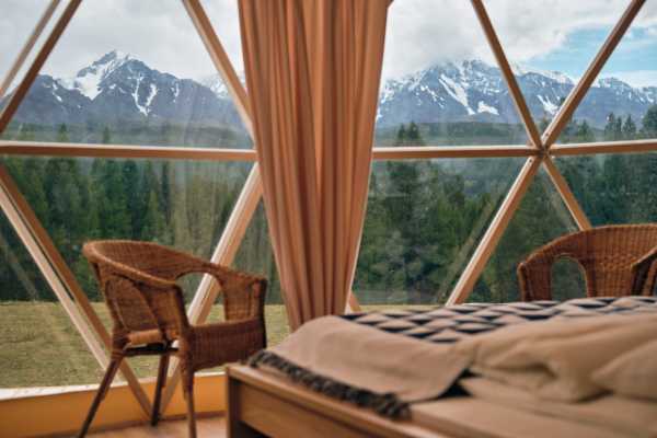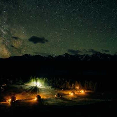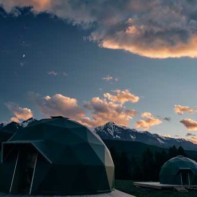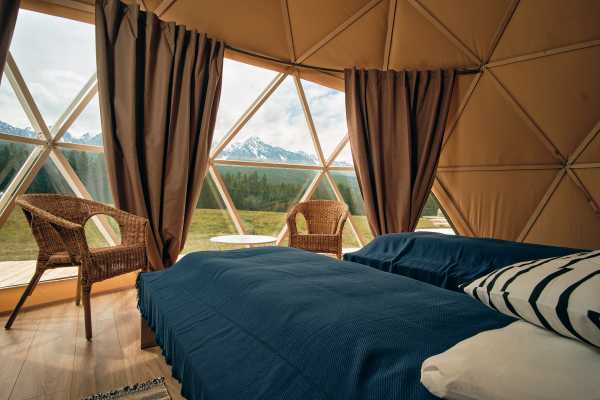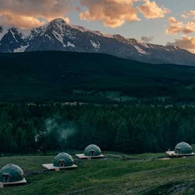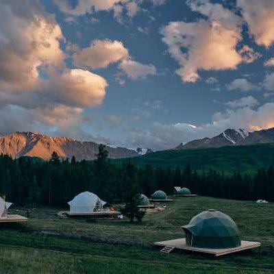 На его территории расположены 9 купольных домов с панорамными окнами, откуда открывается великолепный вид на заснеженные вершины Северо-Чуйского хребта. Также есть 5 простых лесных шатра.