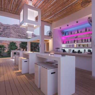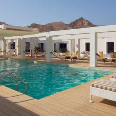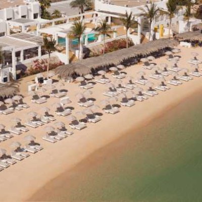 Дизайн отеля с декором в белых тонах и отделкой в стиле минимализма напоминает современный средиземноморский пляжный клуб. Пляжные хижины с кондиционером, ванной комнатой на открытом воздухе и собственной террасой оформлены в стиле «барасти».