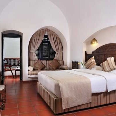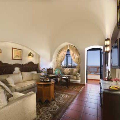 В номере Junior Suite площадью 48 кв.м вас ждет спальня со стандартной двуспальной кроватью, оформленная в арабском стиле с использованием мебели из темного дерева, изысканного освещения и мягких бежевых и кремовых тонов. Благодаря двум LCD-телевизорам вашей семье никогда не будет скучно, а кондиционер с индивидуальным управлением гарантирует в номере комфортную температуру.