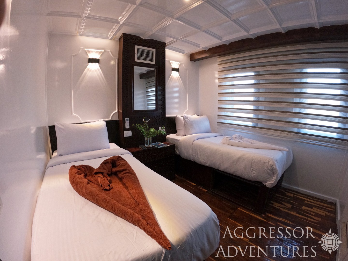 Комфортабельные условия размещения для 20 гостей включают 10 просторных кают с центральной системой кондиционирования воздуха. В каждой есть собственная ванная комната, иллюминаторы (или большие окна) с видом на воду, туалетный столик с зеркалом, фен, свежие полотенца и регуляторы громкости. В каждой каюте установлен 32-дюймовый плоский телевизор.