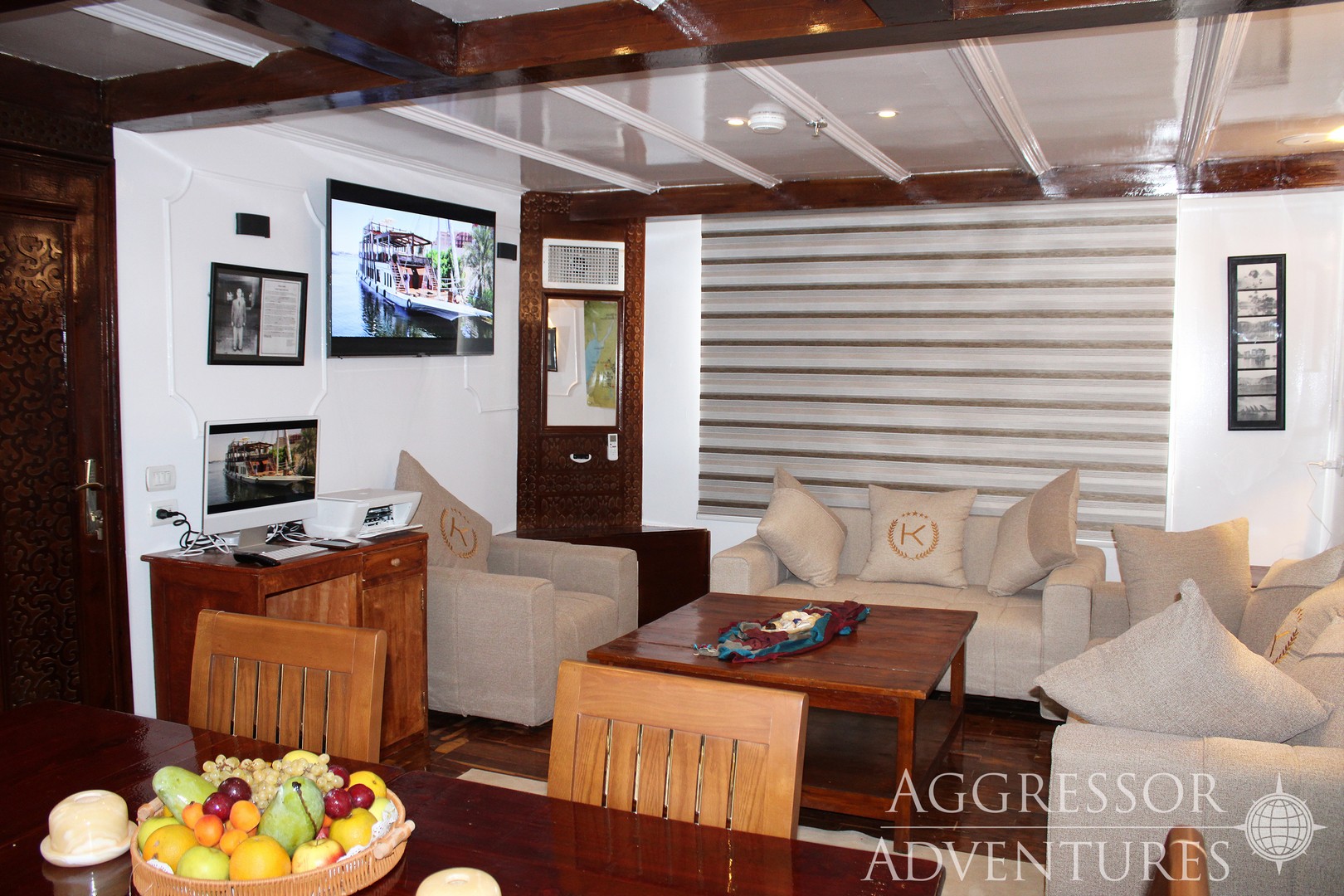 Для гостей организованы разнообразные вечерние развлечения, просмотр фильмов, настольные игры и многое другое. У нас есть коллекция из 700 классических и новых фильмов на жестком диске, которые можно посмотреть в салоне лодки или взять с собой в каюту на небольшой флеш-накопитель. Однако если у вас есть любимый фильм, цифровое слайд-шоу или видео, которыми вы хотите поделиться, мы рекомендуем взять их с собой.