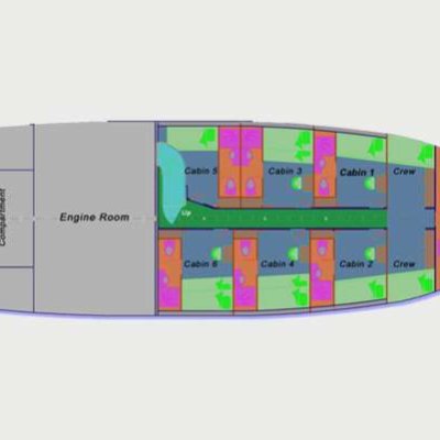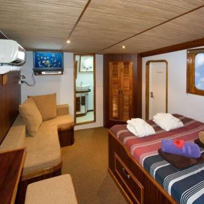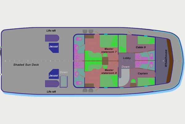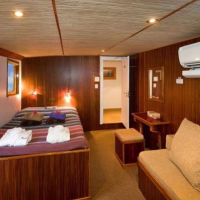 4 каюты «Делюкс», нижняя палуба - каюты более просторные, одна большая кровать внизу и одна поменьше наверху