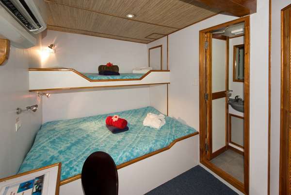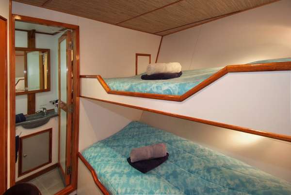 2 каюты «Стандарт», нижняя палуба - одна большая кровать внизу и одна поменьше наверху