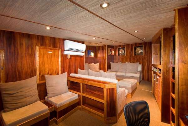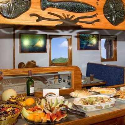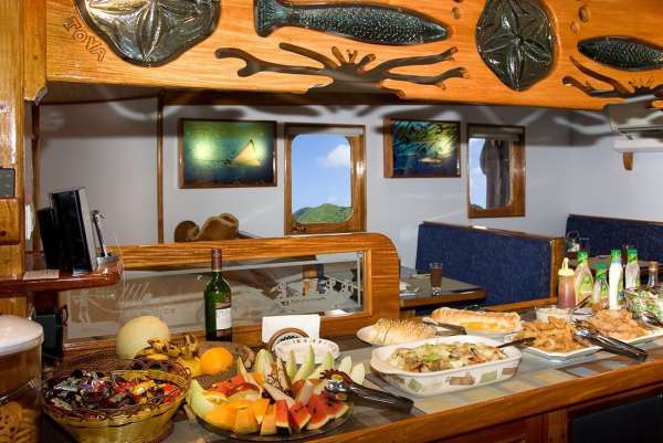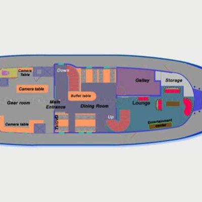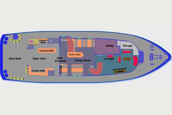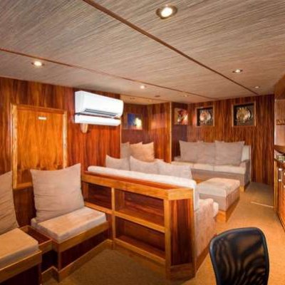 Заядлые дайверы, возможно, захотят сразу после погружений поработать с полученным фото- и видеоматериалом. Для этого отведена специальная рабочая зона с розетками на 110, 220 и 415 В и дополнительным местом для хранения оборудования. Также Вы можете свободно обрабатывать фото и видео, пользоваться электронной почтой и записывать материалы на диски с помощью мощных компьютеров, установленных на борту.