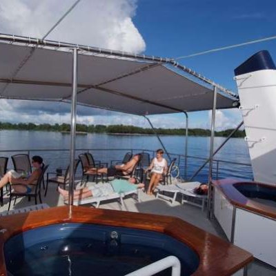 Ocean Hunter 3 может похвастаться большим рестораном и комфортным салоном с мягкими диванчиками и видеосистемой. Также в салоне есть автомат эспрессо, так что Вы можете насладиться просмотром хорошего фильма с чашечкой ароматного кофе. Если Вам не хочется сидеть внутри, есть другая, не менее привлекательная альтернатива! Как насчет джакузи на верхней палубе?