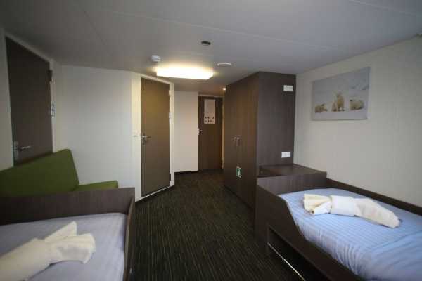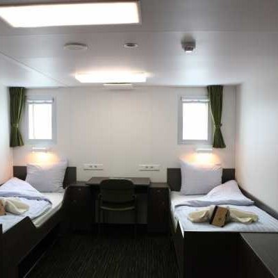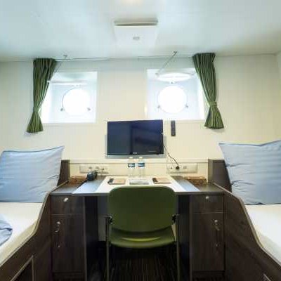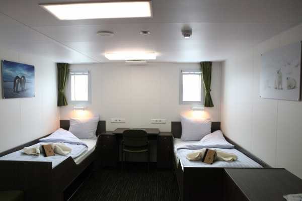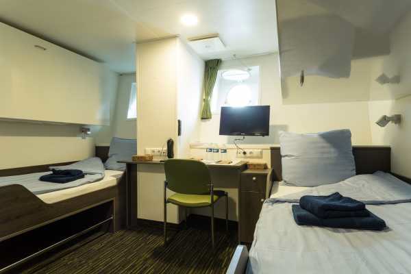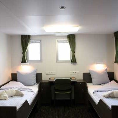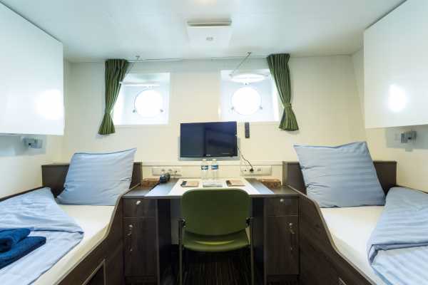 – 41 двухместная каюта (27 х Twin porthole с иллюминаторами, 12 х Twin window с окнами, 2 х Twin deluxe с окнами): 2 кровати на одном уровне