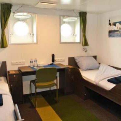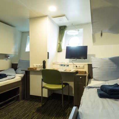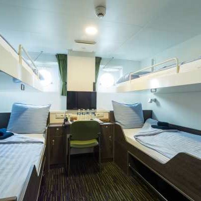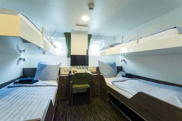 – 2 трехместные каюты (Triple porthole): простая и двухъярусная кровати, иллюминаторы