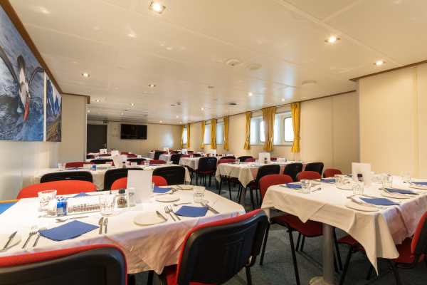 Ортелиус предлагает комфорт стандартного отеля с двумя ресторанами, баром и лекционным залом, а также множество открытых палубных площадок.
