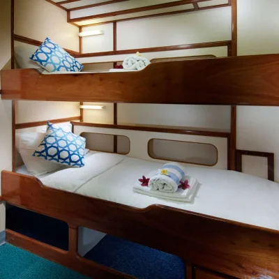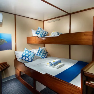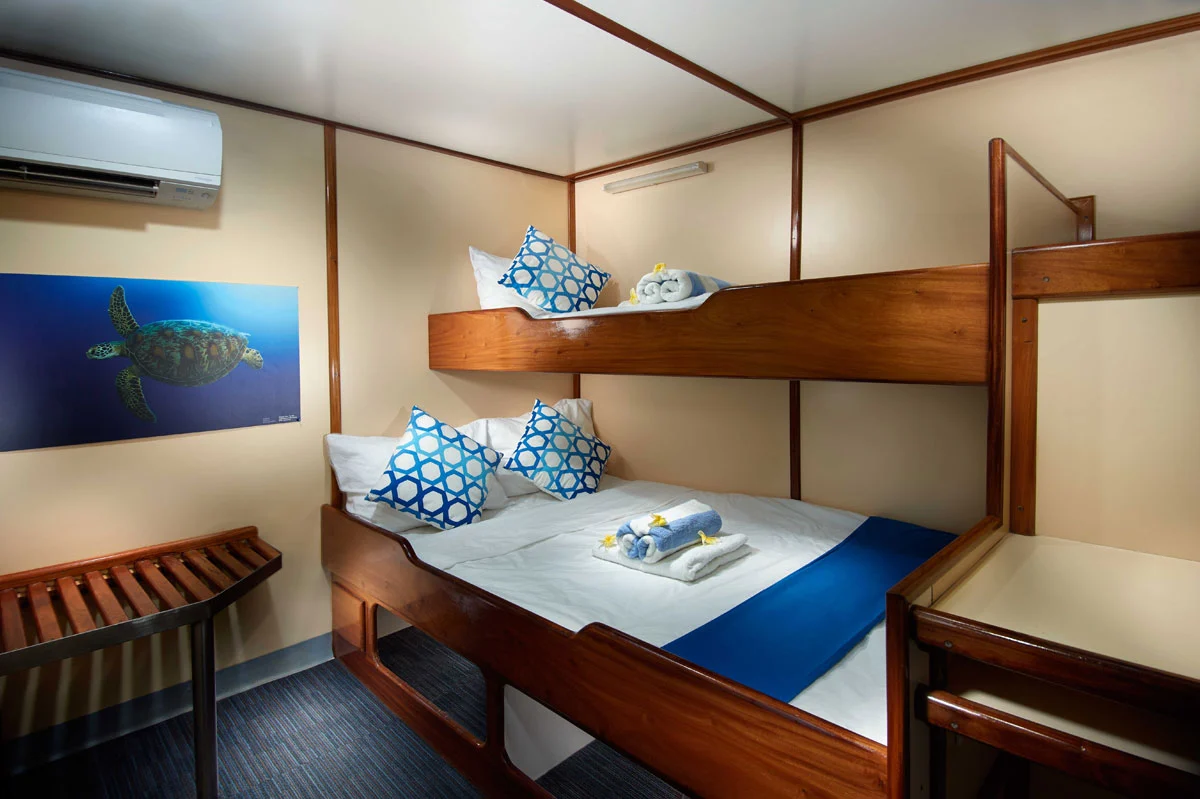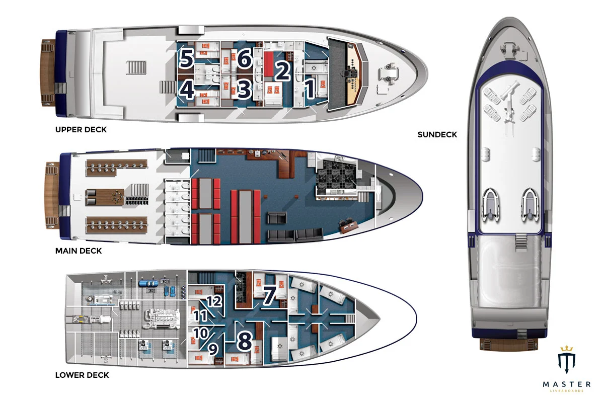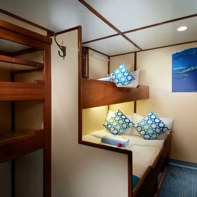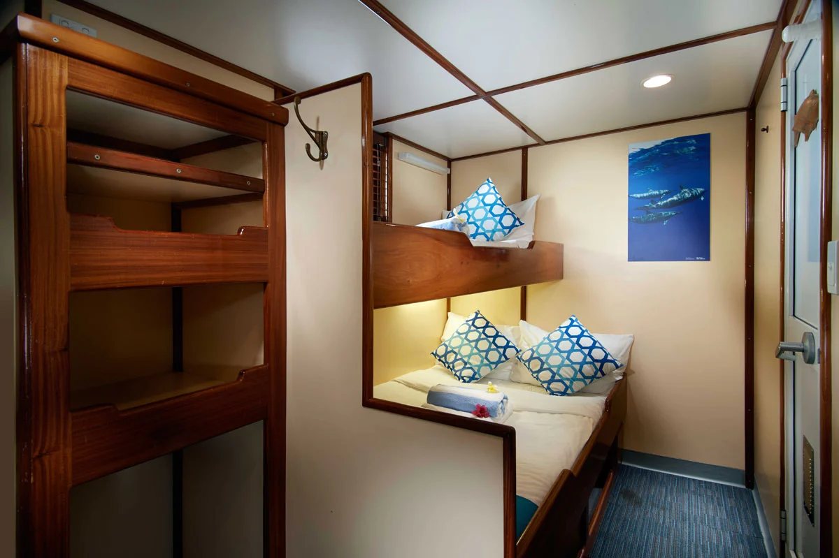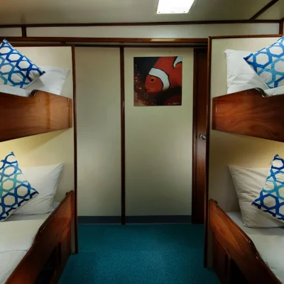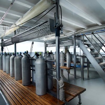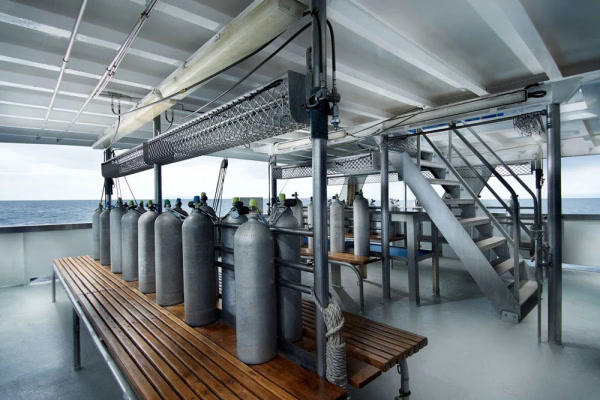 Индивидуальные дайв-простанства обеспечивают достаточно места и удобное хранение для вашего дайвинг-оборудования. Здесь также предусмотрены отдельные туалеты, пресные души и резервуары для промывки снаряжения.