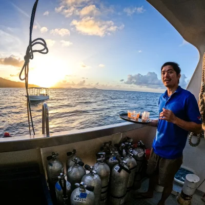 С металлическим корпусом и опытной командой, Pacific Master обеспечивает высочайшие стандарты обслуживания благодаря профессиональным дайв-гидам и талантливым поварам.
