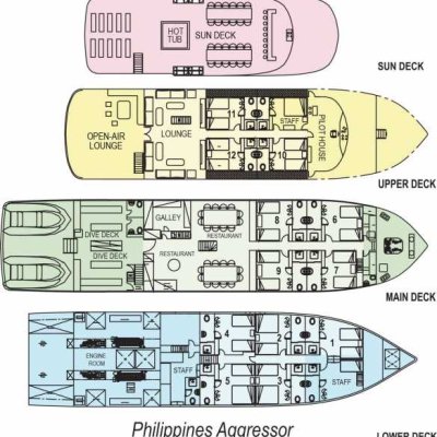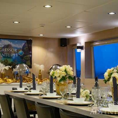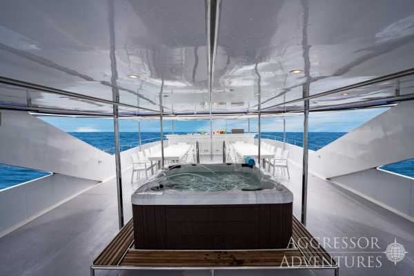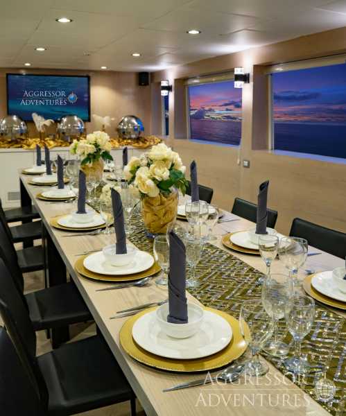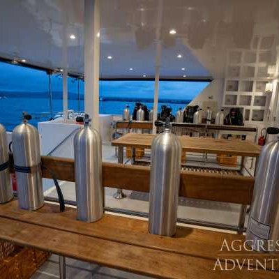 Выбор напитков на Aggressor включает фруктовые соки, безалкогольные напитки, воду со льдом, чай со льдом, кофе, а также ограниченный выбор местного пива и вина — всё это бесплатно. Из-за высоких пошлин на крепкий алкоголь мы рекомендуем привозить свои любимые марки. Употребление алкоголя и дайвинг несовместимы. Как только вы выпьете алкоголь, вы становитесь «загорающим» до следующего дня.