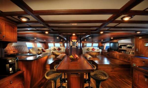Построенная на индонезийском острове Сулавеси, яхта является традиционным гафельным парусником пининси, построенным из железного дерева и тика.
