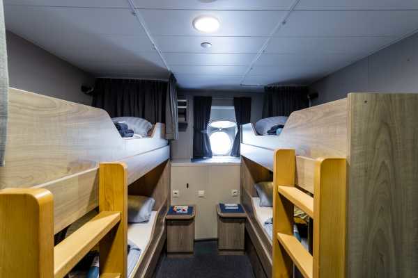 – 4 четырехместные каюты (Quadruple porthole): 2 двухъярусных кровати, иллюминаторы