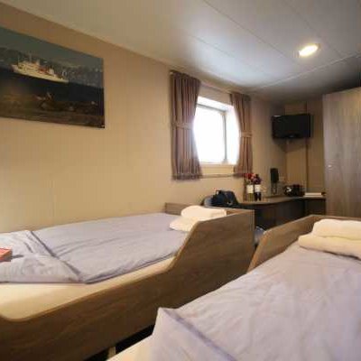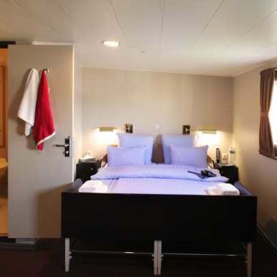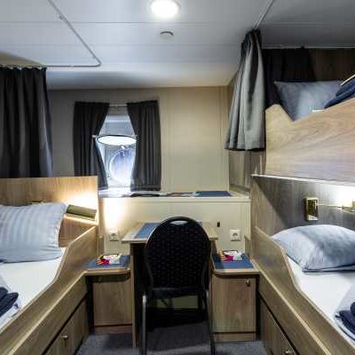 – 37 двухместных кают (9 х Twin porthole с иллюминаторами, 26 х Twin window с большими окнами, 2 х Twin deluxe ): 2 кровати на одном уровне (площадь кают около 15 кв.м)