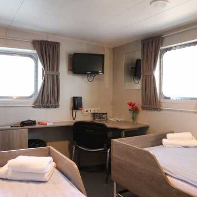 – 10 двухместных кают повышенной комфортности (Twin Superior ): двуспальная кровать (либо две отдельных), письменный стол, большое окно (площадь кают около 21 кв.м)