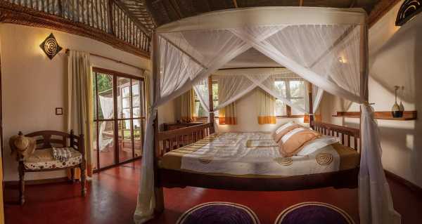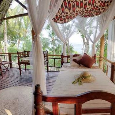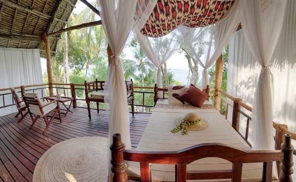 Бунгало площадью 60 м2. Расположен среди кокосовых пальм с видом на залив. Состоит из спальни, ванной комнаты и веранды, на которой находятся занзибарские кровати, стулья, столы и кресла.