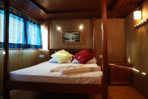4 каюты двухместные на верхней палубе - одна большая кровать.