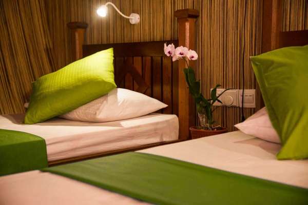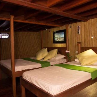 Типы кают: 5 стандартных двухместных кают (одна кровать большая и одна маленькая - максимальное размещение 3 человека)