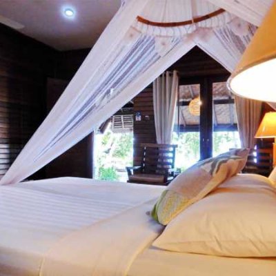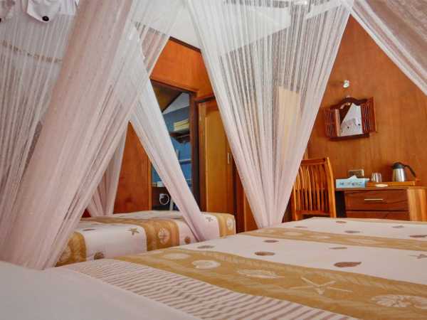 - 20 номеров Делюкс расположены параллельно береговой линии (Deluxe Beachfront Rooms), в то время как 7 стандартных номеров (Standart) расположены в длинном доме, расположенном в тени прохладного тропического леса.