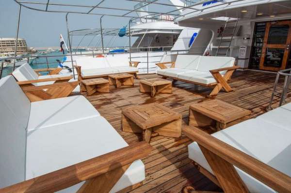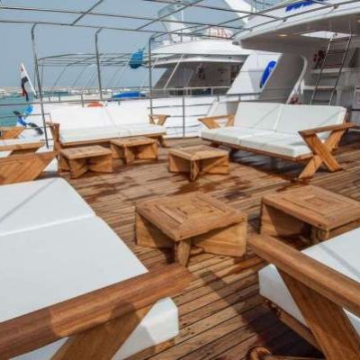 Поскольку яхта специально устроена для того, чтобы гости проводили свой отпуск на борту, конечно, для всех гостей достаточно места, чтобы расслабиться и насладиться дайвинг сафари. Просторный сан дек, терраса на мостике, отдельный бар и лаундж с неба с современной развлекательной системой и даже джакузи делают роскошным пребывание на борту.