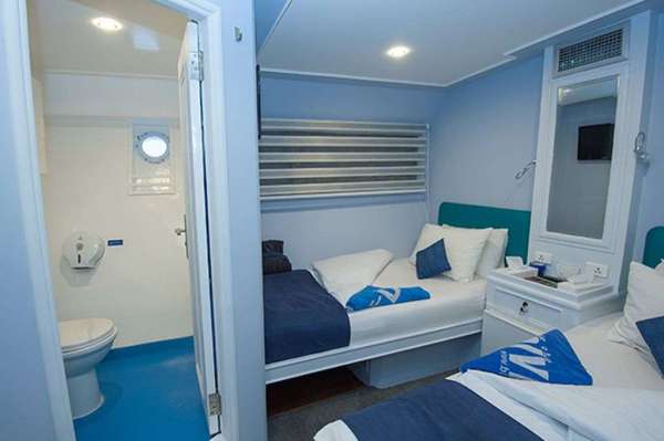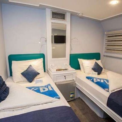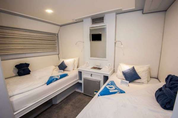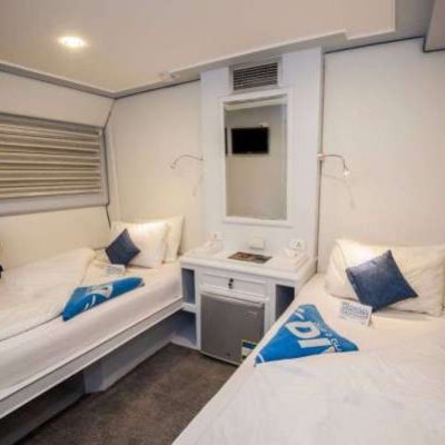 Каждая каюта оснащена кондиционером, собственной развлекательной системой, мини-холодильником и удобной ванной комнатой.