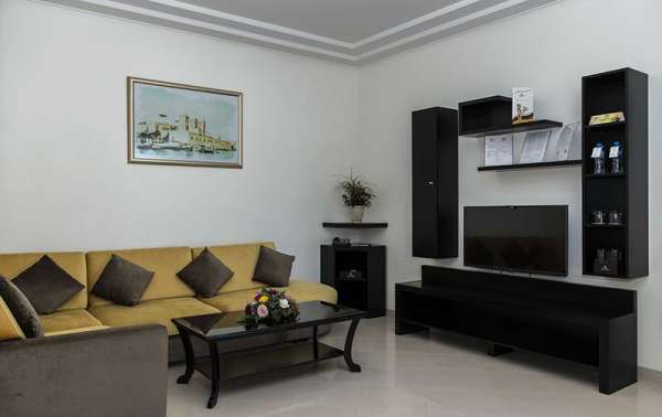 Executive Room – спальня (двуспальная кровать или 2 односпальные кровати), ванная комната, мини-бар, телевизор, балкон с видом на море, мини-кухня, гостиная комната.