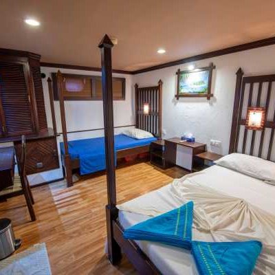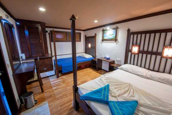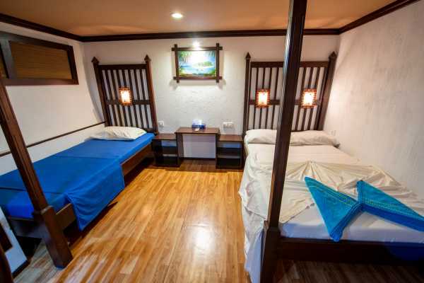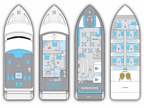 – 4 каюты «Standard» (1, 2, 6 и 7) с двуспальной + односпальной кроватями
