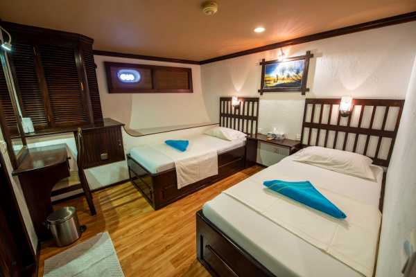 – 2 каюты «Twin» (3 и 5) с двумя односпальными кроватями