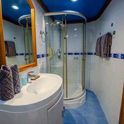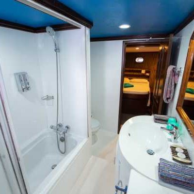 В каждой каюте: индивидуальный контроль кондиционирования, санузел с туалетом и душем, минибар, иллюминатор, индивидуальные лампы для чтения.
