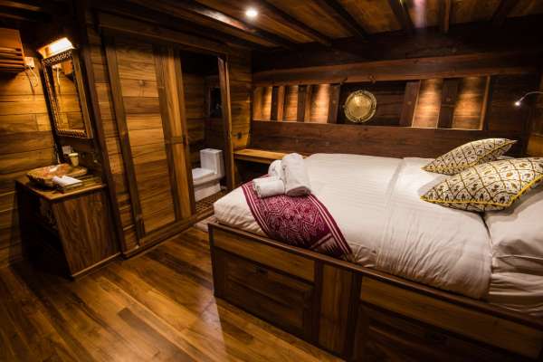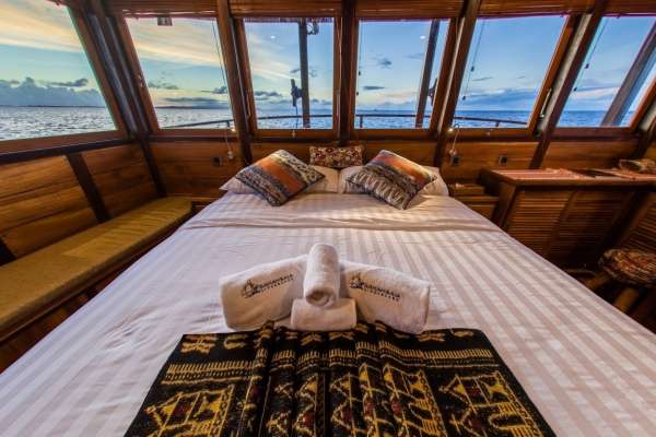 Мастер-каюта, расположенная на юте, располагает большими окнами открывающие вид на 180°. Специальное покрытие стекла обеспечивает конфиденциальность.
