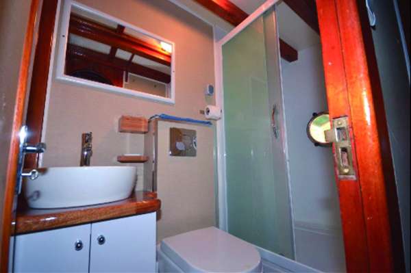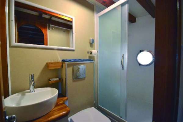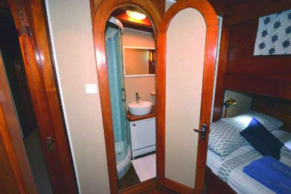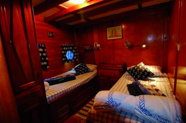 РазмещениеВсего 8 кают (7 для гостей); среди них 3 с двуспальной кроватью, 2 с односпальными кроватями и 2 с двуспальной кроватью и односпальной кроватью наверху. Все каюты имеют собственный кондиционер и ванные комнаты с душем. Банные полотенца, халаты и пляжные полотенца также предоставляются.