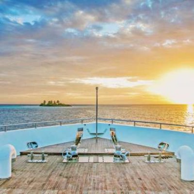 Зона отдыха на верхней палубе оборудована небольшим навесом с легкими белыми занавесями. Это место может использоваться как для отдыха, так и для SPA или приватных ужинов. Если вы захотите остаться наедине, вам нужно просто сказать об этом персоналу, и вас не побеспокоят другие гости яхты.