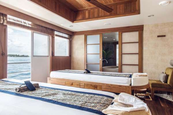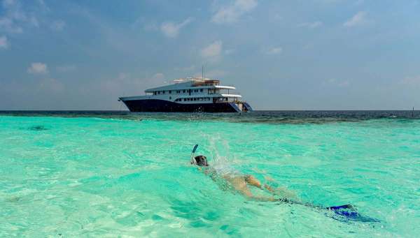 С осени 2013 года на Мальдивах был запущен новый проект. Любители Мальдивских островов получили подарок. На огромной яхте, более 50 метров длиной, можно теперь разнообразить отдых и путешествовать по островам, не ущемляя при этом свой уровень комфорта. Европейский менеджмент и дизайн, большие площади, 5* сервис, изысканная кухня. Добавьте сюда 2 мощных двигателя и стабилизационный контроль, которые не позволяют яхте раскачиваться.