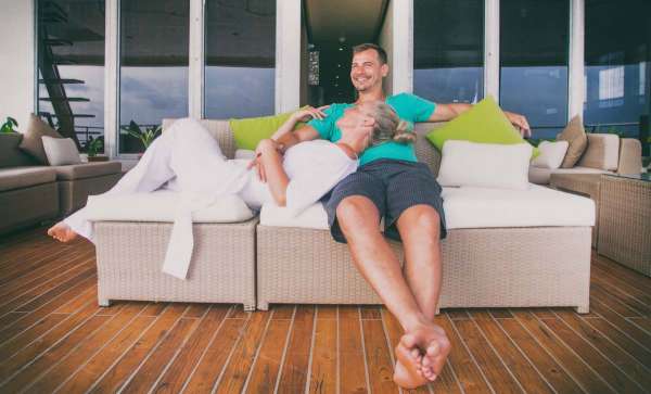 Зона отдыха расположена на главной палубе на открытом воздухе, но полностью затенена. Оборудована диванами и столиками.