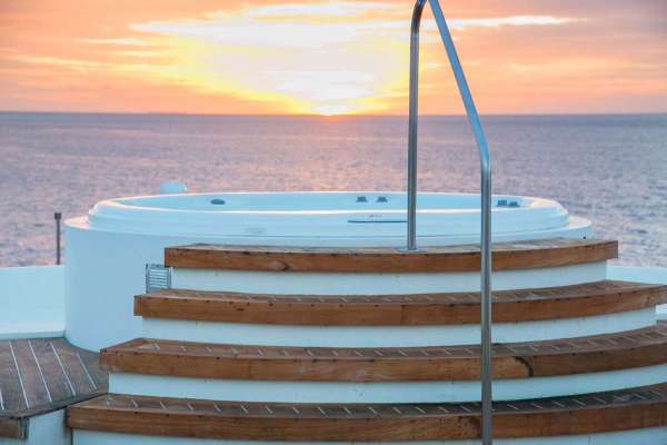Палуба для загара на верхней палубе оборудована шезлонгами, изменяемым затенением и джакузи.