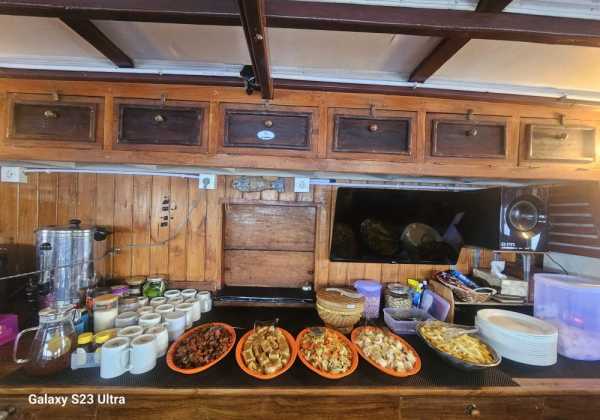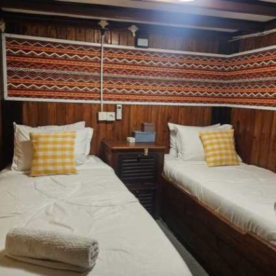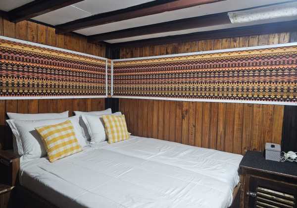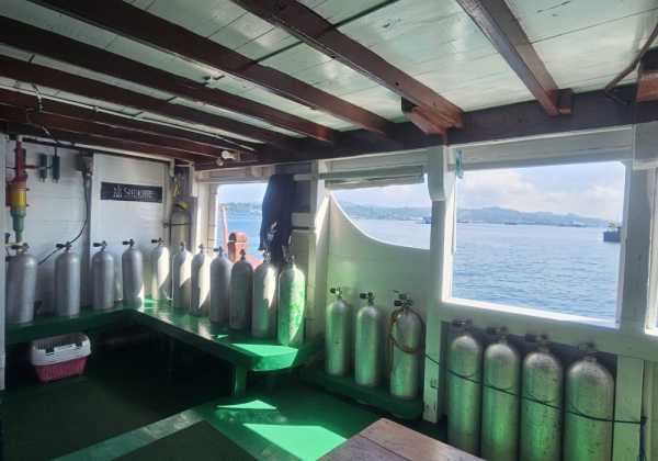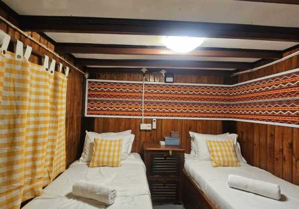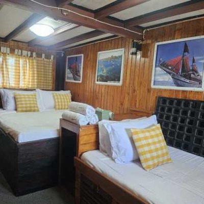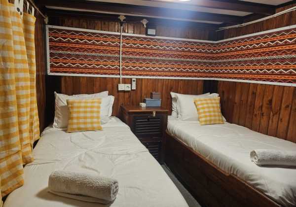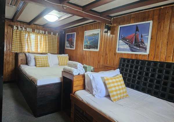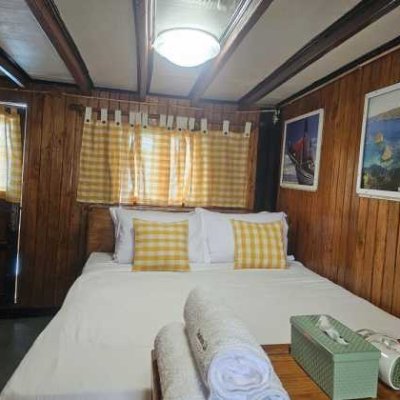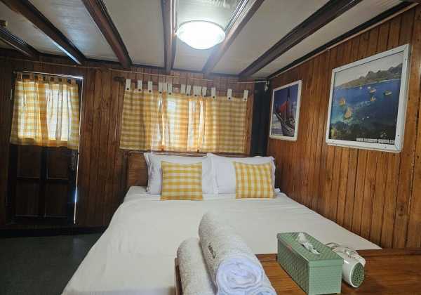 5 кают для гостей находятся на главной палубе, где также расположена зона для дайвинга и общественные туалеты.