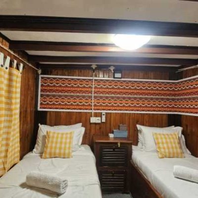 Лодка удобно вмещает до 18 пассажиров в 9 каютах, расположенными на 2 палубах, каждая из которых оборудована собственными ванными комнатами.