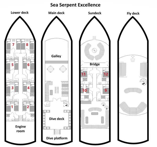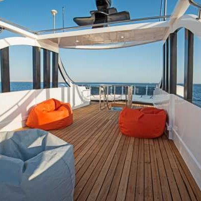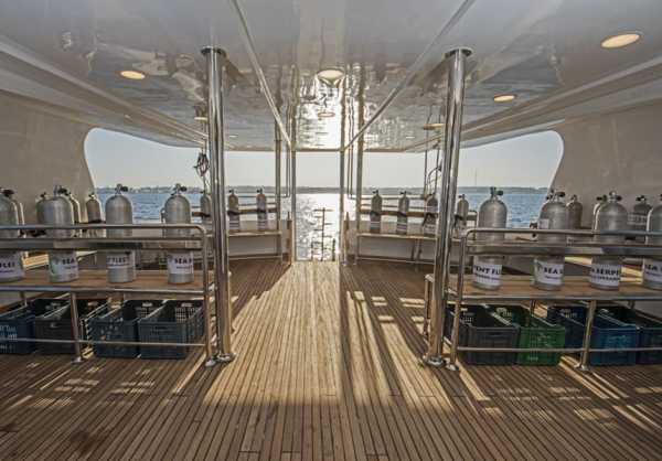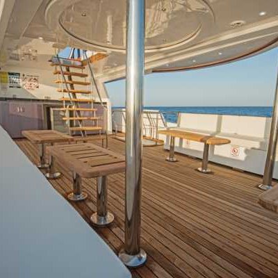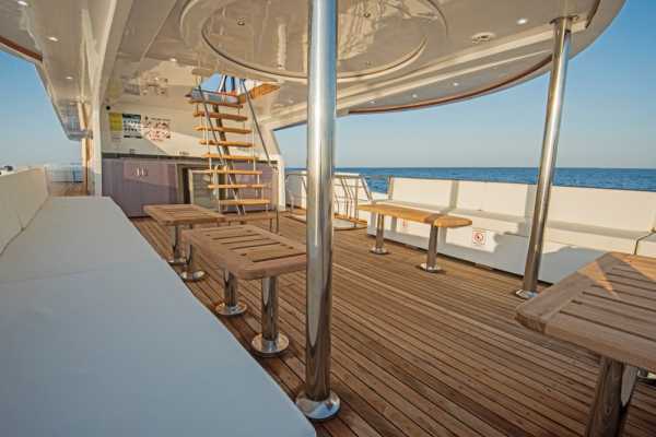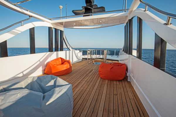 Полузатененная солнечная палуба Excellence - это нечто! Здесь можно классно провести время, общаясь с друзьями и отдыхая после дайвинга. А верхняя палуба идеально подходит как для загара, так и для созерцания звезд.