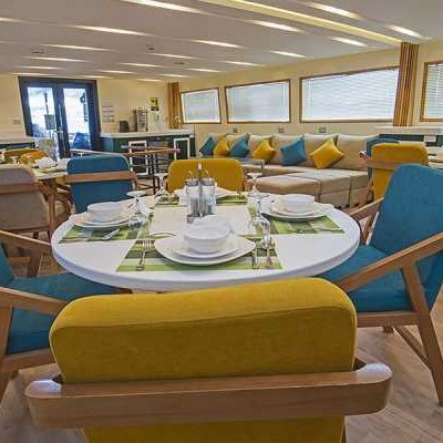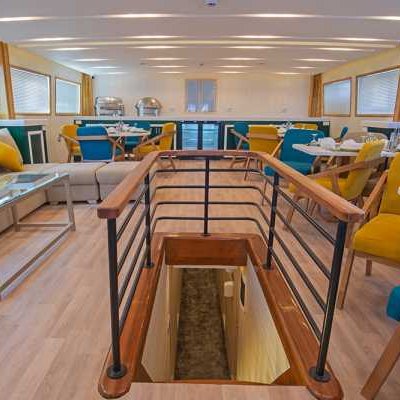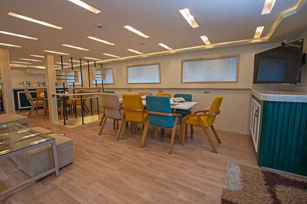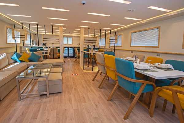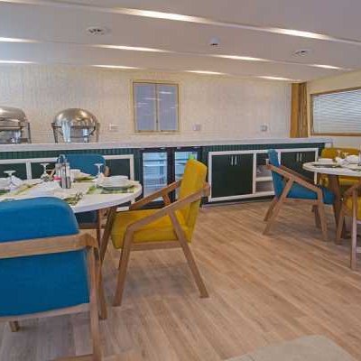 В 2020 году на яхте был проведен капитальный ремонт. Новый современный облик придает его интерьеру ощущение свежести и практичности.