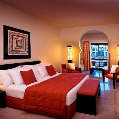 Современные номера курортного отеля Reef Oasis с мебелью из темного дерева оснащены кондиционером, телевизором и мини-баром. В некоторых номерах есть телевизор с плоским экраном и отдельная гостиная зона.