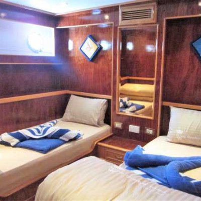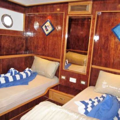 Эта каюта площадью 8 м² представляет собой двухместную каюту: 2 односпальные кровати, расположенные рядом, с ванной комнатой и душем с горячей водой. Кабина оборудована кондиционером.