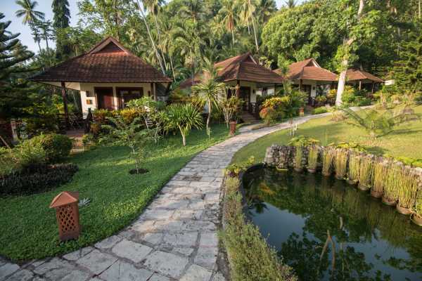 Группа из 8 вилл расположена в пышном саду. Из них 6 вилл с двумя раздельными кроватями и 2 виллы с одной двуспальной кроватью. Высокие деревянные потолки делают комнату уютной и «воздушной». Из своего номера Вы можете выйти на собственную террасу в тропическом саду и наслаждаться видом на море. Размер номера вместе с террасой и душем 66 кв.м. Максимальное размещение: 2 взрослых + 2 детей до 10 лет или 3 взрослых.