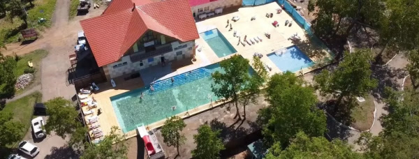 Для своего отдыха Вы можете выбрать дома повышенной комфортности или эконом размещение в номерах гостиницы. На территории базы отдыха есть три бассейна с термальной водой, русская баня на дровах, сауна, беседки и мангальные зоны. Рекомендуем так же посетить кафе.
