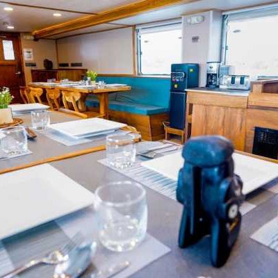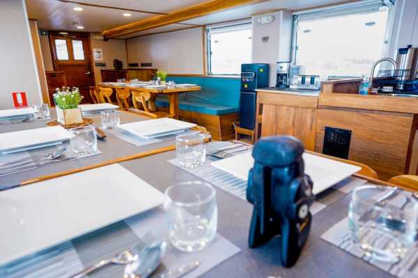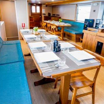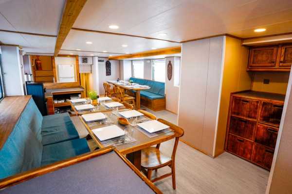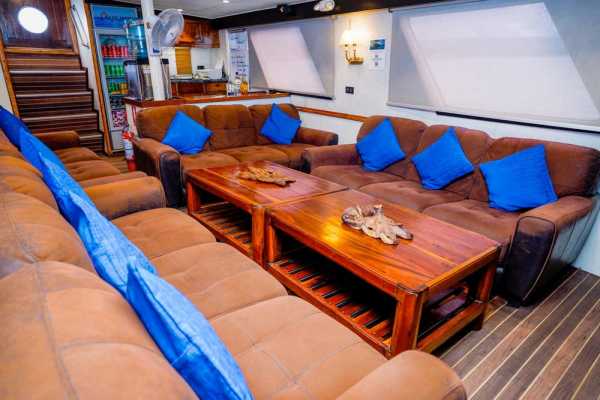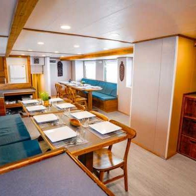 На главной палубе находится просторная столовая в помещении, а также помещение с многочисленными точками зарядки и местами для хранения вещей. После фантастического дня дайвинга отдохните в крытом лаундже и баре Solomons Master, оборудованном плазменным экраном, который идеально подходит для просмотра фильмов или фотографий. Кроме того, вы можете отправиться в тенистую зону отдыха или на большую солнечную террасу на верхней палубе и отдохнуть в шезлонге, наслаждаясь атмосферой и потрясающими видами.