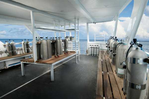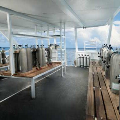 Палуба для погружений на Solomons Master большая и просторная, с индивидуальными установочными местами, местами для хранения под скамейками и платформой с лестницами. Судно полностью оборудовано для дайверов-любителей, технических дайверов и дайверов с ребризерами.